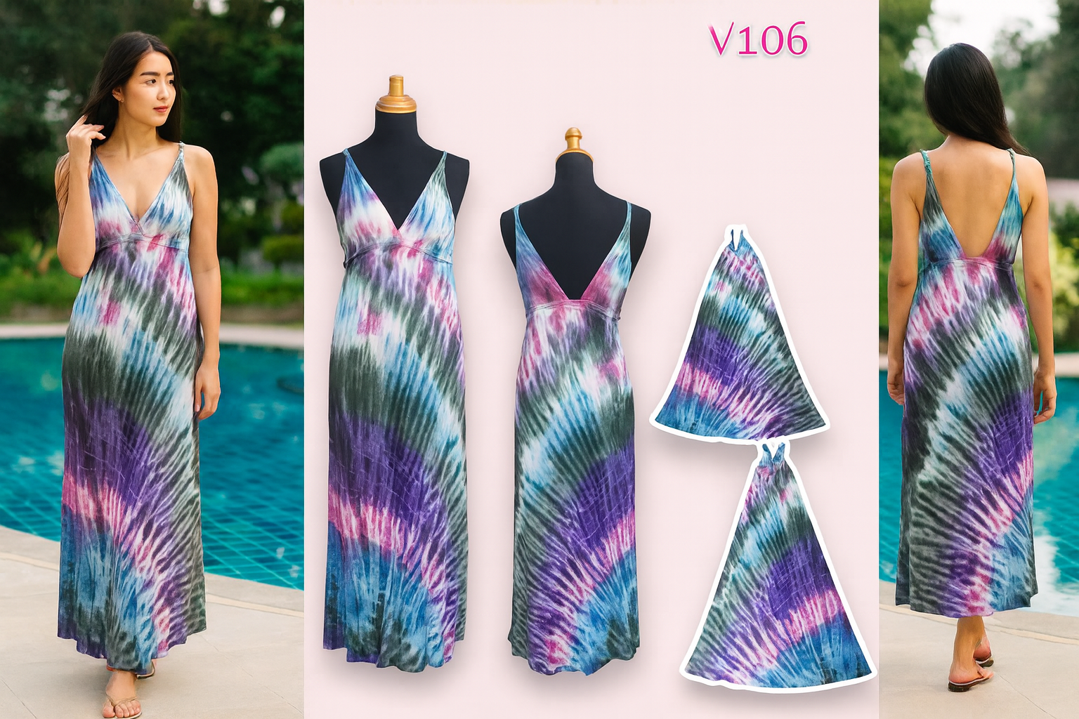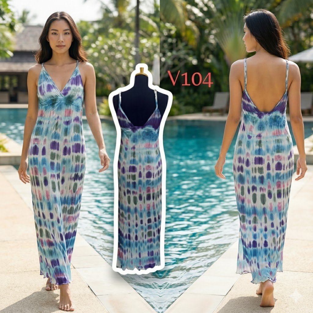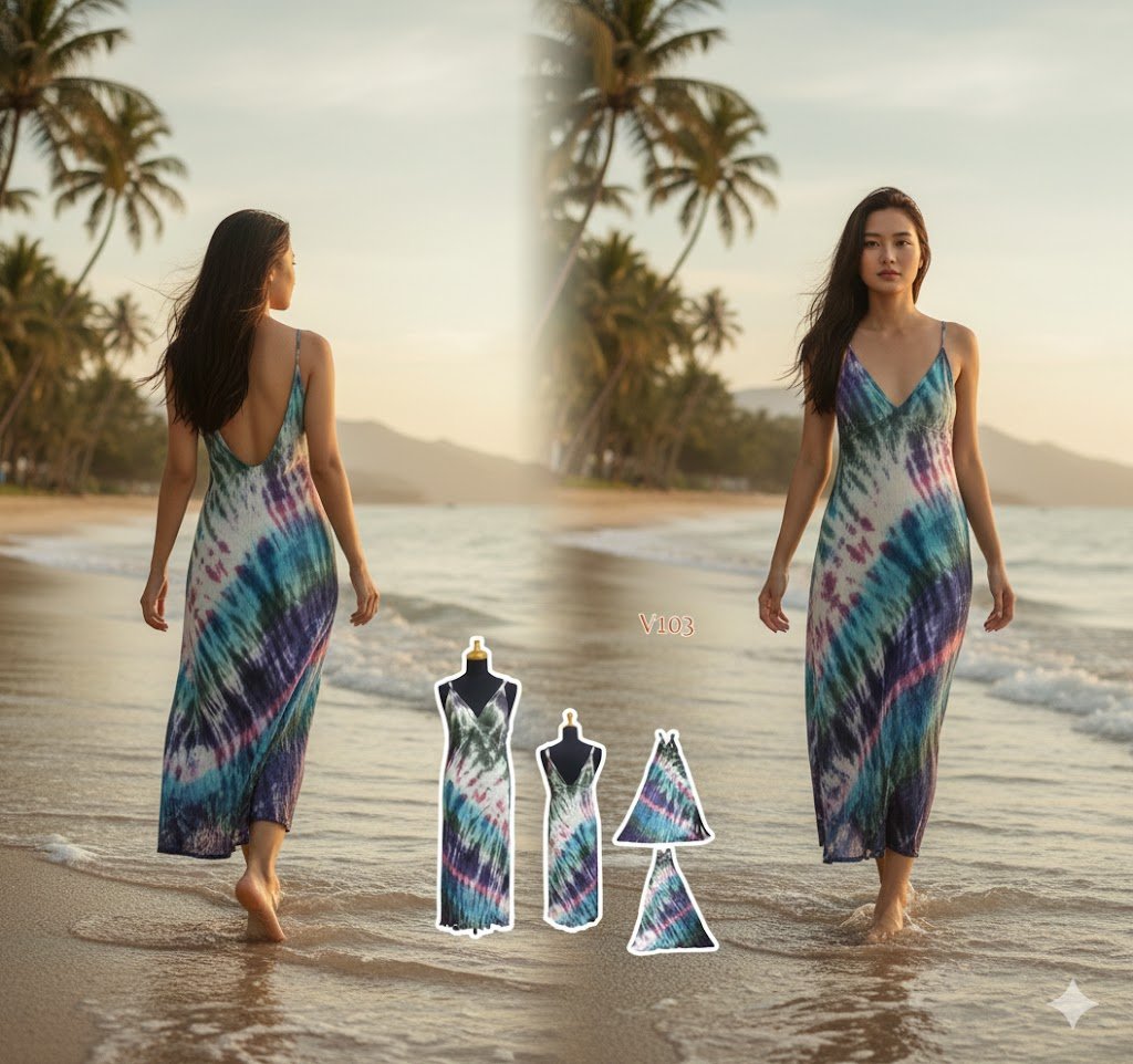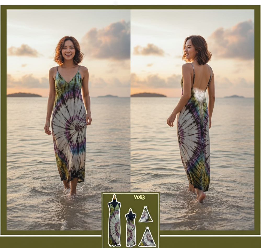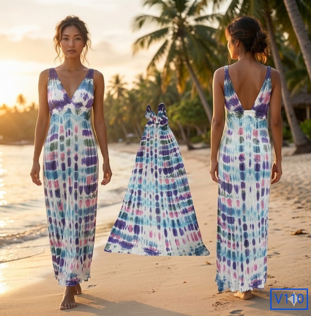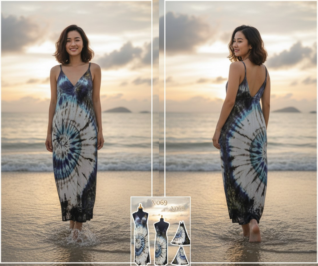 เดรสยาวมัดย้อม สีสันสดใส ใส่ไปทะเลแต่ละตัวไม่เหมือนกัน มีลายเฉพาะตัว เพราะมัดและจุ่มสีด้วยมือ ไม่ซ้ำใครแน่นอน เป็นสต็อคสินค้าเหลือจากที่ทำส่งประเทศญี่ปุ่น ผ้ายืดนิ่มใส่สบาย ผ้ายืดนิ่มใส่สบาย